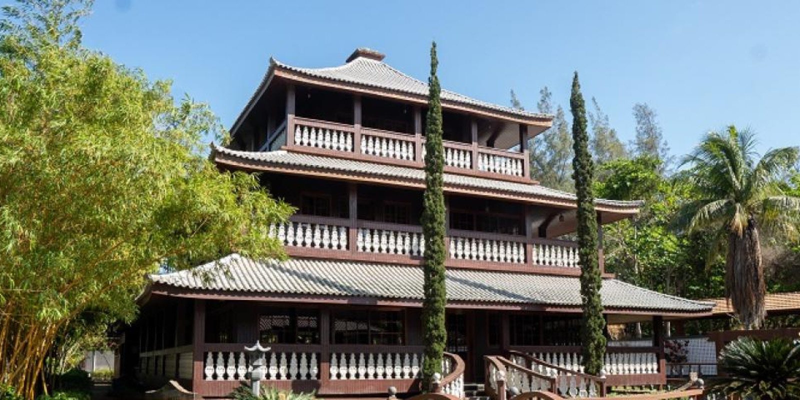 Réplicas de monumentos, como o Taj Mahal, Pagode Chinês e Casa de Chá Japonesa